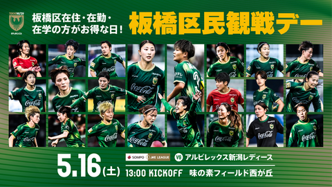 5/16(土)アルビレックス新潟レディース戦『板橋区民観戦デー』開催のお知らせ