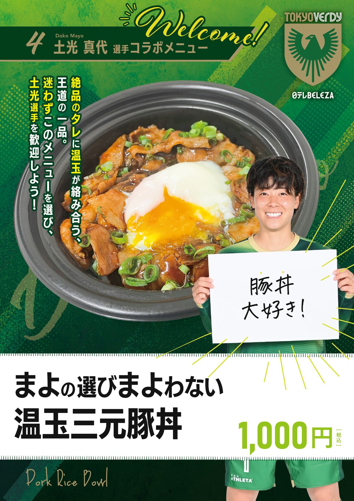 アンケートにて豚丼が大好き!と回答した、土光真代 選手オリジナルのコラボメニュー。