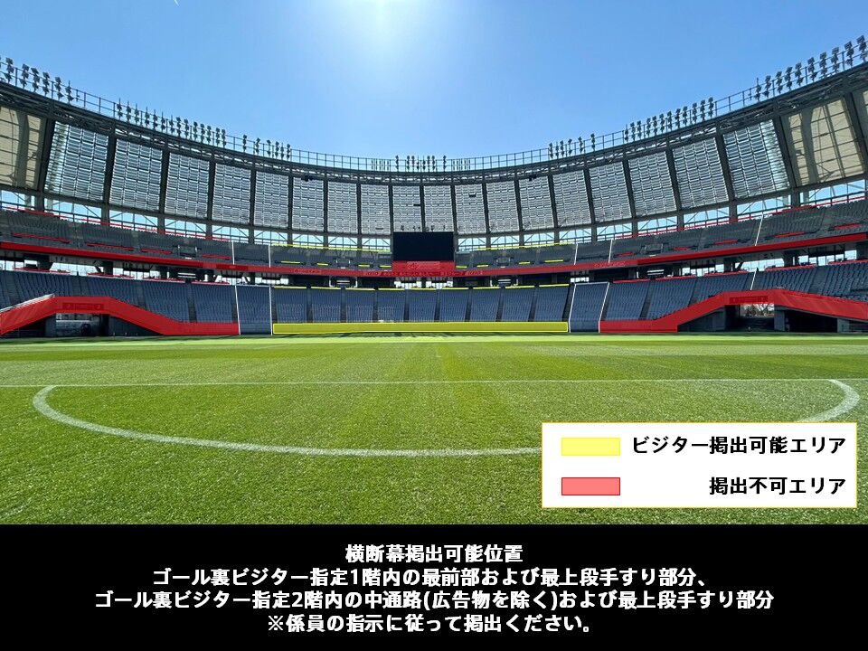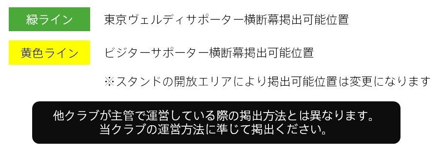 ※他クラブの掲出状況にかからわず、こちらに記載した以外のエリアでの横断幕の使用、掲出は一切不可となります。
