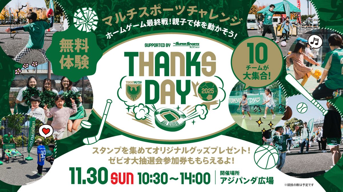 11月30日(日)鹿島アントラーズ戦にて、ユニフォームパートナーである『ゼビオグループ』にマッチデーパートナーとしてサポートいただき、『THANKS DAY 2025 supported by ゼビオグループ』を開催します。