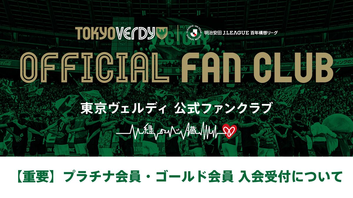 明治安田J1百年構想リーグ 公式ファンクラブ『緑の心臓』プラチナ会員・ゴールド会員につきまして、本年度も入会定員を設けた形で受付を実施します。