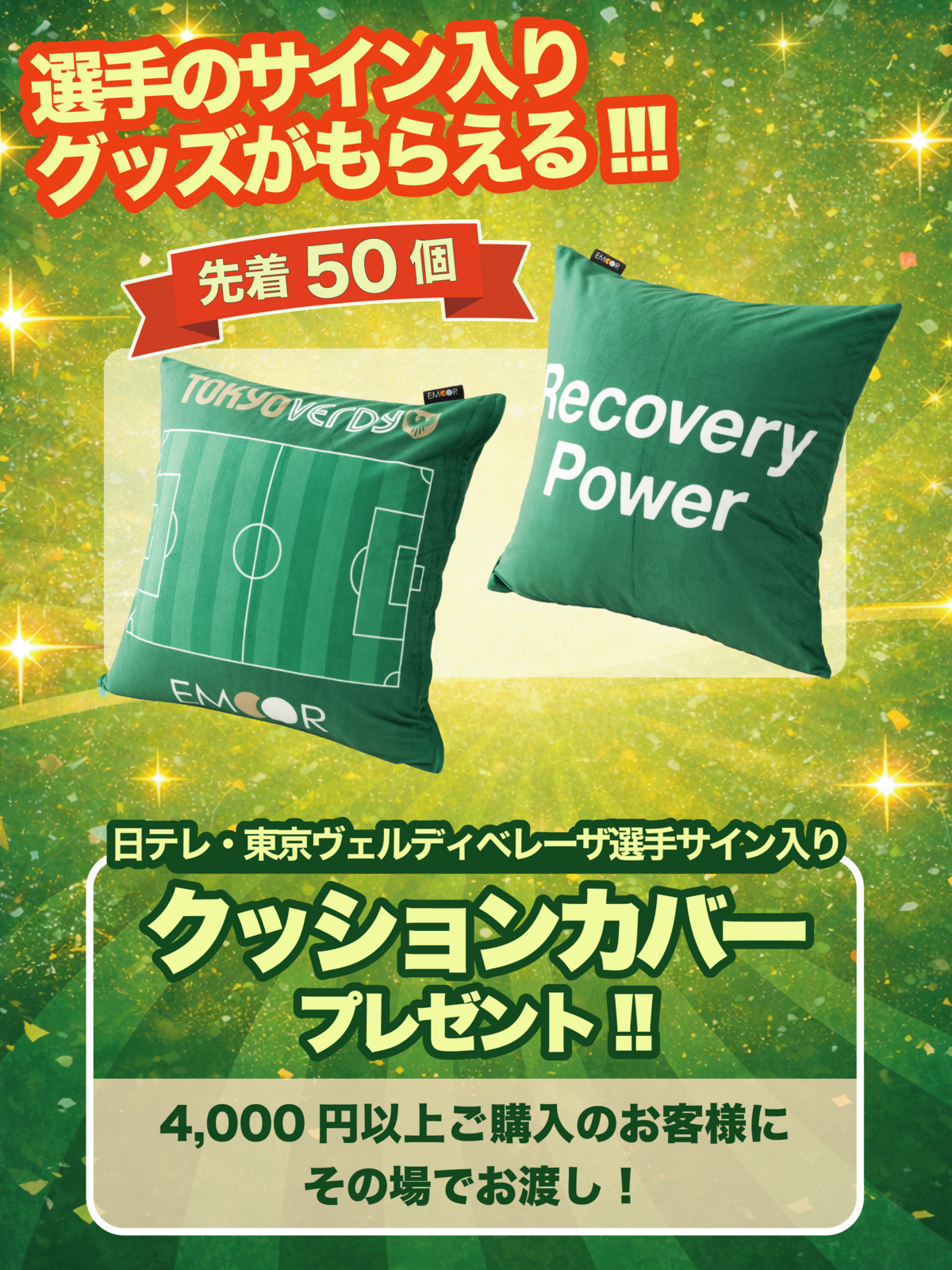 ベレーザ エムールDAY当日限定企画!『日テレ・東京ヴェルディベレーザ選手サイン入りクッションカバー』をプレゼント!サイン入りの限定クッションをGETできる大チャンス♪