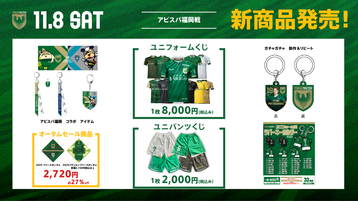 11月8日(土)アビスパ福岡戦にて販売するグッズ情報、およびオフィシャルグッズショップ出店内容について、ご案内します。