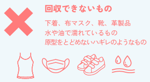 以下の繊維製品を回収します。メーカーやブランドは問いません。