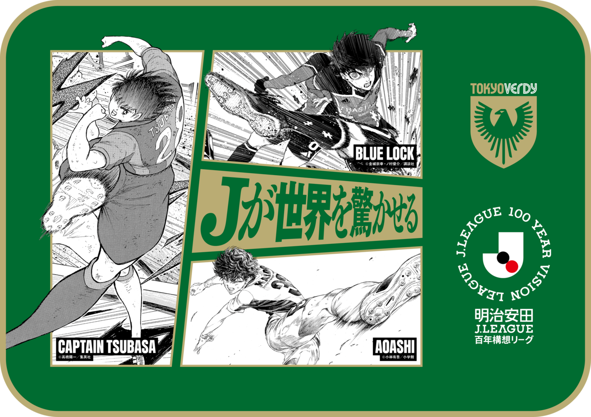 本企画は、シーズン移行に際して開催される特別な大会である『明治安田Jリーグ百年構想リーグ』を記念して実施されるものです。ブランケットのデザインには、日本が世界に誇るサッカー漫画『キャプテン翼』をはじめ、近年国内外で絶大な人気を誇る『ブルーロック』『アオアシ』の3つの作品との史上初のトリプルコラボレーションが実現しました。シーズン移行という大きな転換点を経て、Jリーグが今後さらに結果を出し、世界を驚かせるという意思を、3作品の主人公が放つ力強いシュートと重ね合わせ、メッセージとして発信していきます。