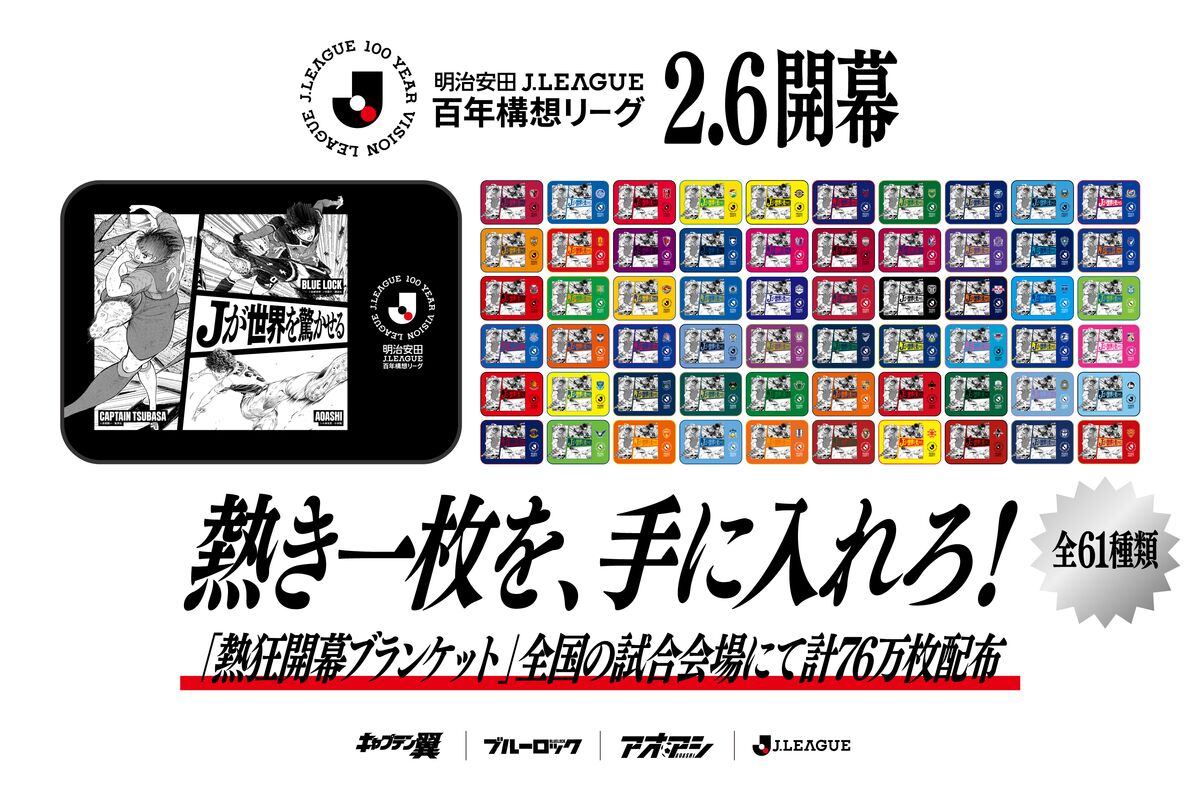 Jリーグは、2026年2月6日(金)の明治安田Jリーグ百年構想リーグ開幕を記念し、2026年2月から3月にかけて行われる開幕期の対象試合において、クラブごとにデザインされた特製ブランケット(全61種)を合計76万枚、来場者の皆さまにプレゼントします。