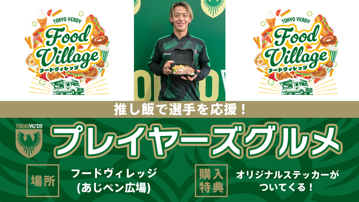フードヴィレッジでの対象店舗の目印は『プレイヤーズグルメ店舗』ののぼりです。選手こだわりのメニューを、ぜひお楽しみください!