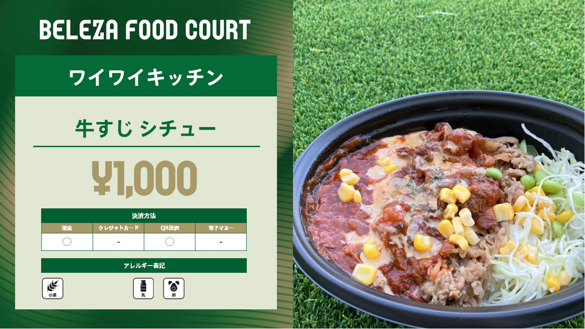 美味しいグルメとともにベレーザサッカーをお楽しみください。