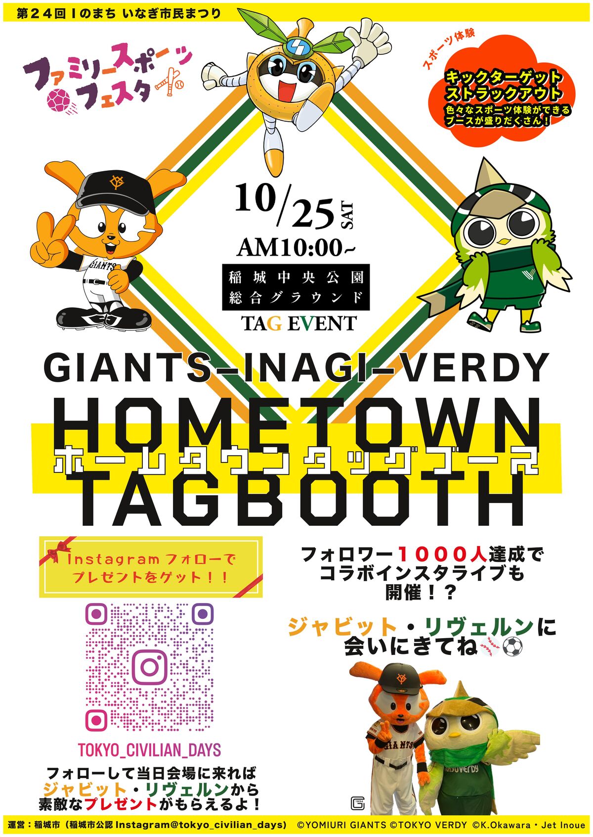 稲城市にて『Iのまちいなぎ市民まつり』にて開催されるファミリースポーツフェスタに、昨年に続き、東京ヴェルディが参加しますのでお知らせします。