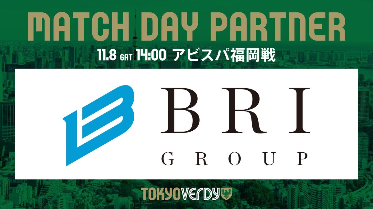 11月8日(土)アビスパ福岡戦にて、『株式会社BRI』にマッチデーパートナーとしてご協賛いただくことが決定しましたので、お知らせします。