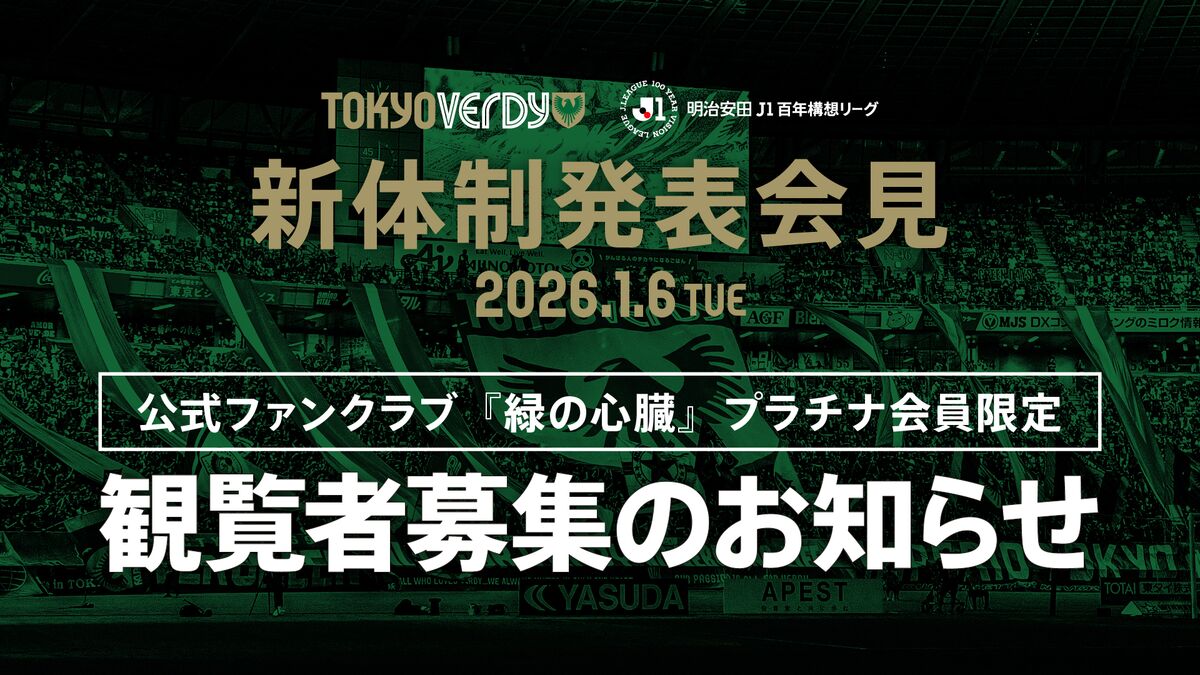 このたび、東京ヴェルディでは、2026年1月6日(火)に2026シーズン 新体制発表会見を実施することとなりました。