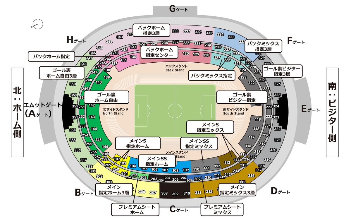 ・席種のエリアは、対象試合やチケットの販売状況により変動する場合があります。各試合の座席図はヴェルディチケット(Jリーグチケット)でご確認ください。
