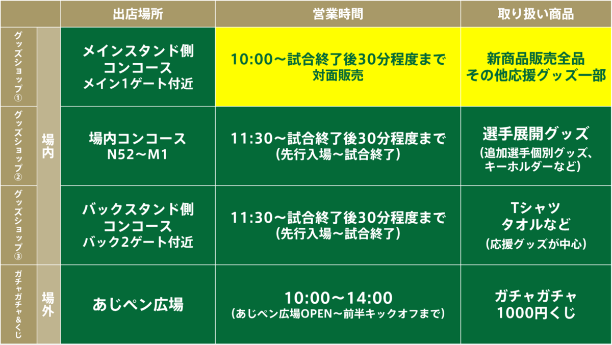 ※試合当日、各コーナーは混雑が予想されます。譲り合ってのご利用にご協力ください。