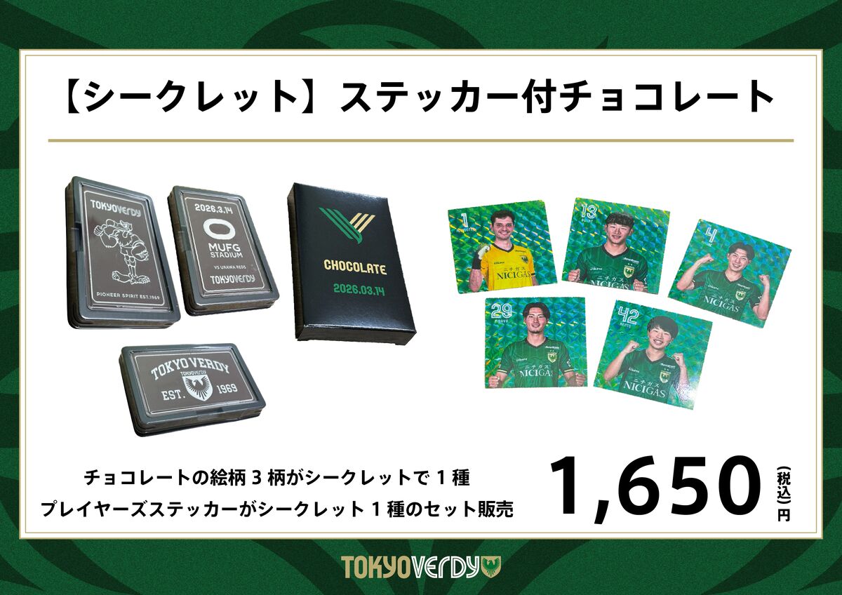 【デザイン】チョコレート:3種、ステッカー:東京ヴェルディ所属32選手