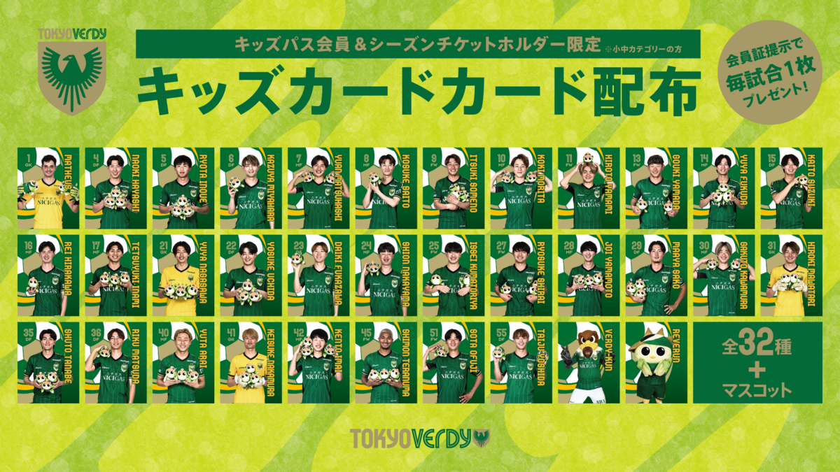 ・東京ヴェルディ 明治安田J1百年構想リーグ 公式ファンクラブ『緑の心臓』プラチナ会員、キッズパス会員