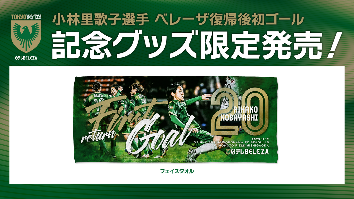 ・小林里歌子 選手 日テレ・東京ヴェルディベレーザ復帰後初ゴール記念フェイスタオル