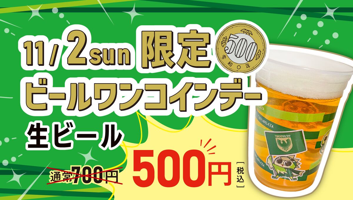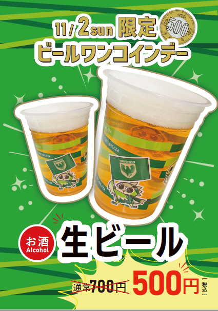 今節は、『生ビールワンコインデー(500円)』を実施!