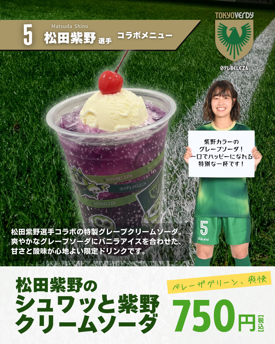 松田紫野 選手コラボの特製グレープクリームソーダ。