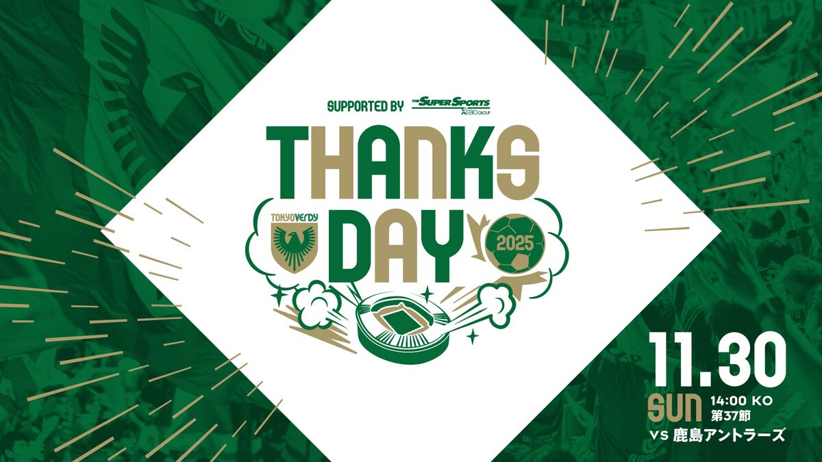 11月30日(日)鹿島アントラーズ戦にて、ユニフォームパートナーである『ゼビオグループ』にマッチデーパートナーとしてサポートいただき、『THANKS DAY 2025 supported by ゼビオグループ』を開催します。