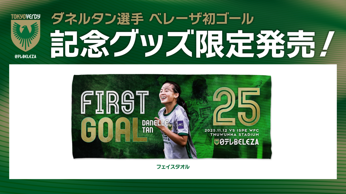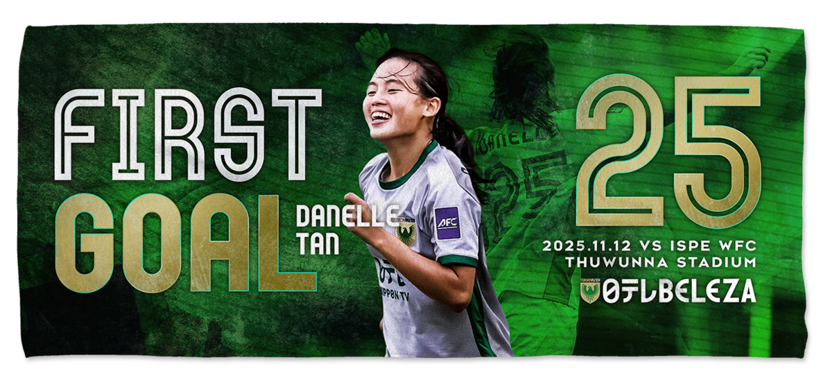 11月12日(水)AFC女子チャンピオンズリーグ 2025/26 グループステージ 第2節 ISPE戦にて日テレ・東京ヴェルディベレーザ初ゴールを決めた、ダネル タン 選手の記念グッズを販売します。