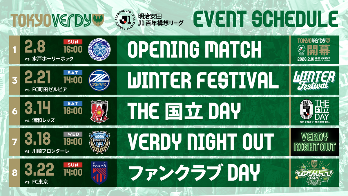 東京ヴェルディのホームゲームで実施するイベントをぜひお楽しみください!