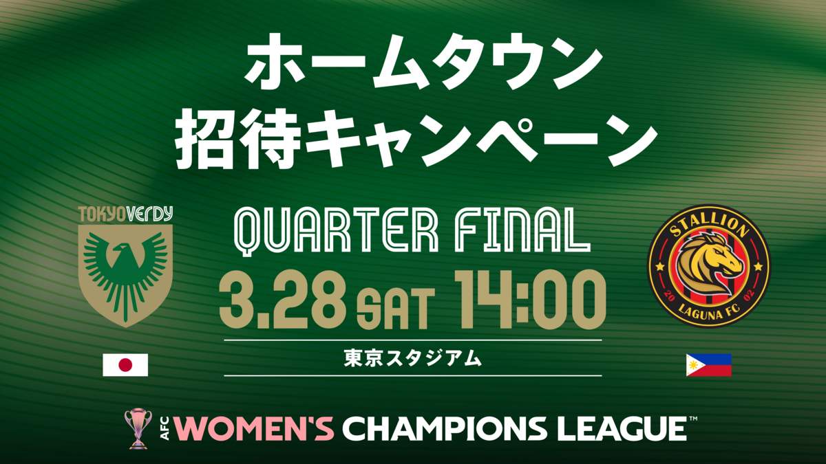 3月28日(土)AFC女子チャンピオンズリーグ2025/26 ノックアウトステージ 準々決勝 スタリオン・ラグナ戦にて、ホームタウン招待キャンペーンを実施します。