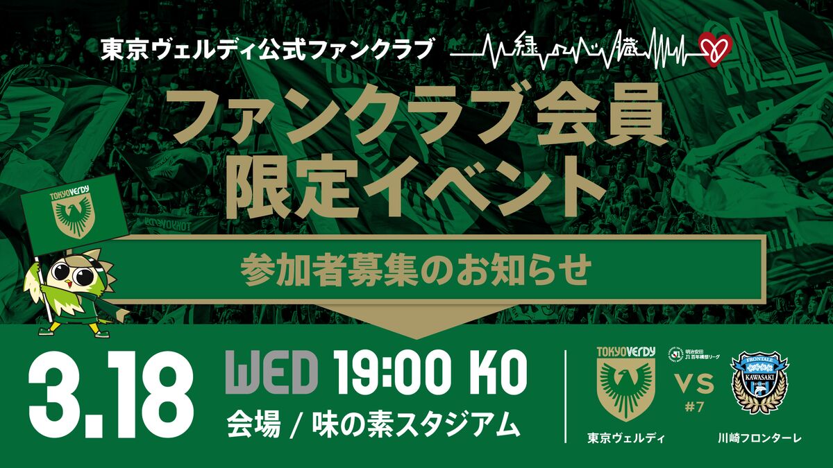 3月18日(水)川崎フロンターレ戦にて、明治安田J1百年構想リーグのシーズンチケット・公式ファンクラブ『緑の心臓』会員の皆さまを対象とした会員限定イベントを実施します。