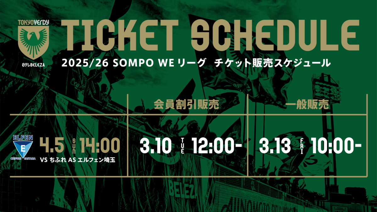 日テレ・東京ヴェルディベレーザでは、4月5日(日)ちふれASエルフェン埼玉戦チケットを以下のとおり販売します。