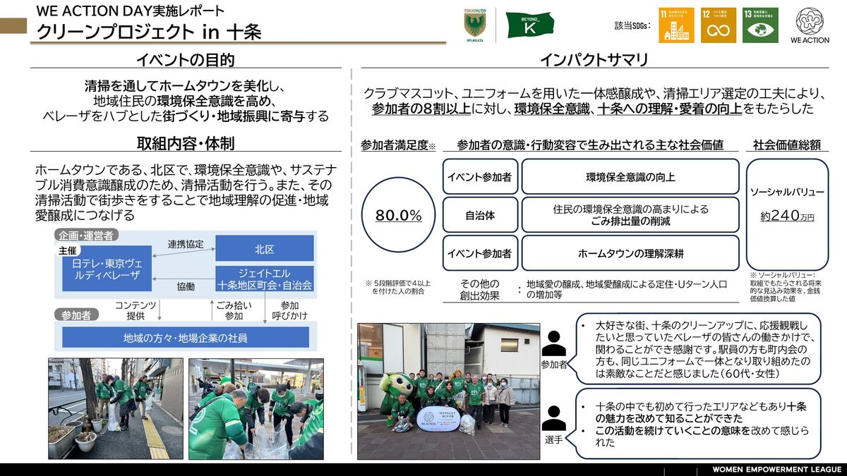 日テレ・東京ヴェルディベレーザでは、ホームタウンである東京都北区の十条にて『WE ACTION DAY』としてクリーンプロジェクトin十条を実施しました。