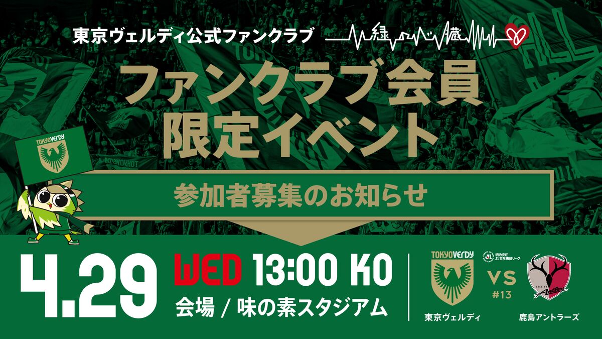 4/29(水・祝)鹿島アントラーズ戦 ファンクラブ会員イベント参加者募集のお知らせ