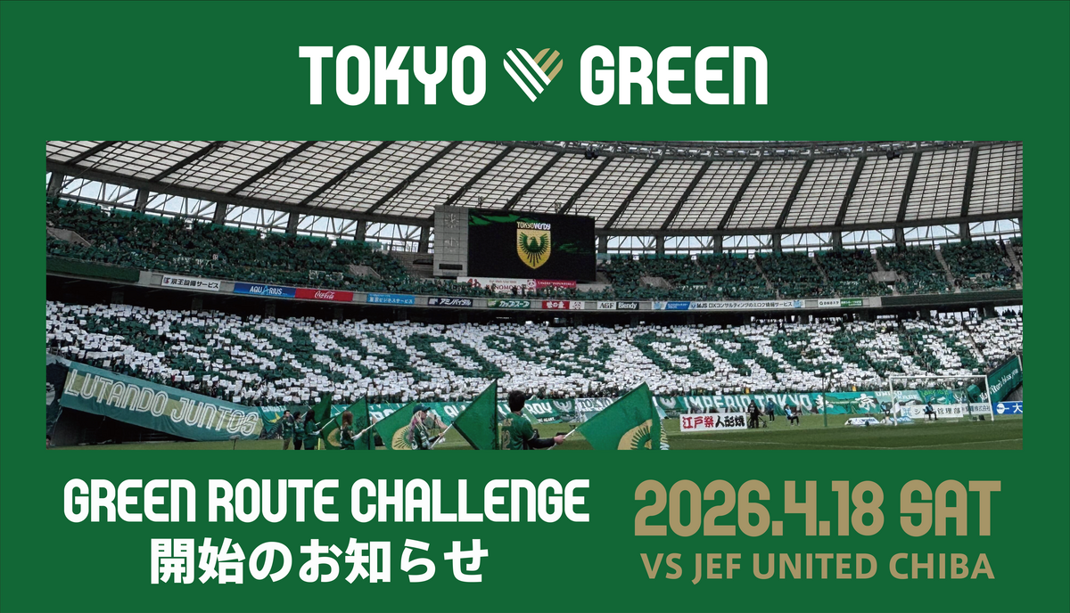 東京ヴェルディでは、TOKYO♡GREEN活動の一環として、環境負荷の少ないスタジアム来場手段を推奨する『Green Route Challenge』を実施します。