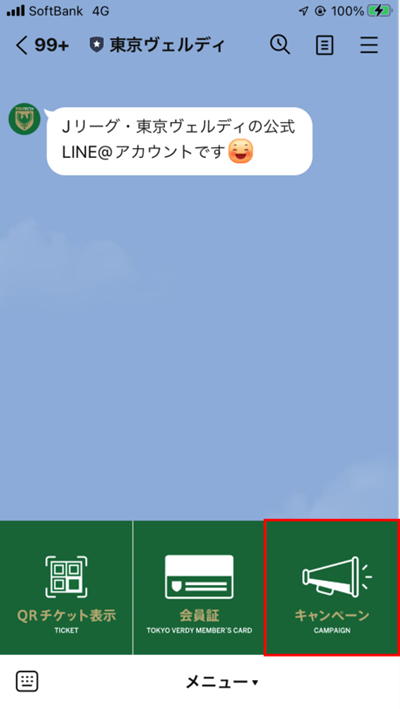 2. 東京ヴェルディ公式LINEのトーク画面でキャンペーンのアイコンを選択