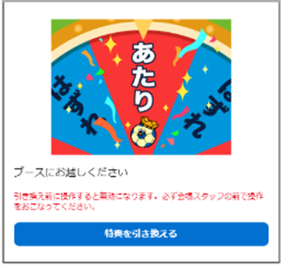 4. 『あたり』が出たら当選となります。画面を提示の上、あじペン広場内のインフォマートブースにてお引換えください。