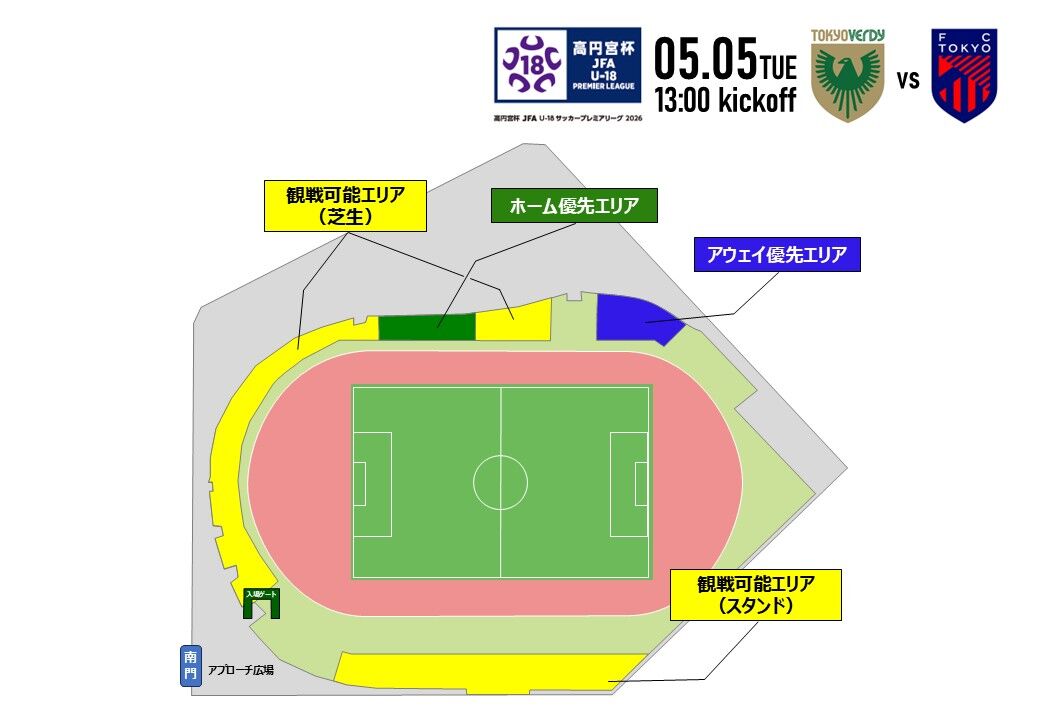 5月5日(火・祝)高円宮杯 JFA U-18サッカープレミアリーグ2026 第6節 FC東京U-18戦の開催会場が、AGFフィールド(調布市)に決定しましたので、お知らせします。
