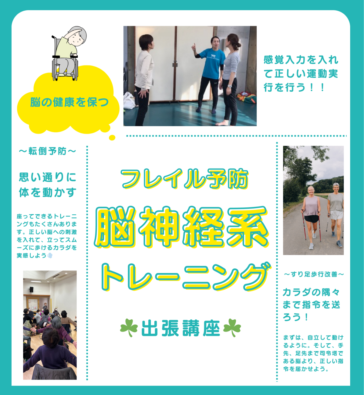 思い通りに体を動かす方法や転倒防止エクササイズなど、参加者に合わせたメニューを提供します!