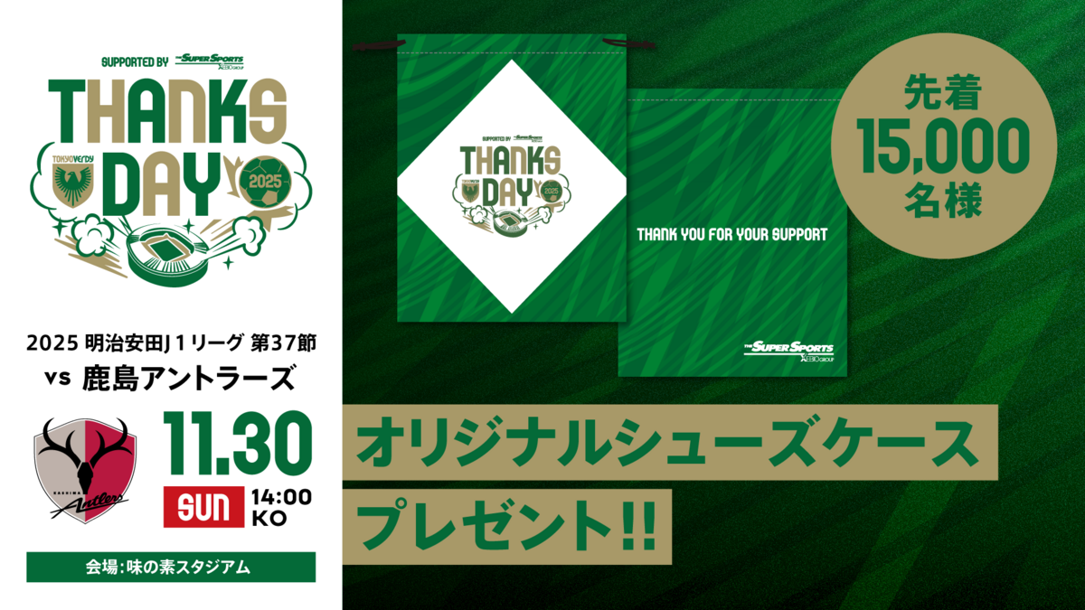11月30日(日)鹿島アントラーズ戦は、ゼビオグループのご協力のもと、『THANKS DAY 2025 supported by ゼビオグループ』として開催!