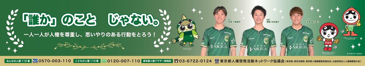 東京ヴェルディでは、『東京都人権啓発活動ネットワーク協議会(東京都、東京法務局、東京都人権擁護委員連合会、公益財団法人人権擁護協力会)』が子ども・若者層に向けて人権問題の正しい理解と認識を広く深めることを目的として行う啓発活動に協力し、11月30日(土)鹿島アントラーズ戦において、オリジナルコラボグッズの配布などを実施します。