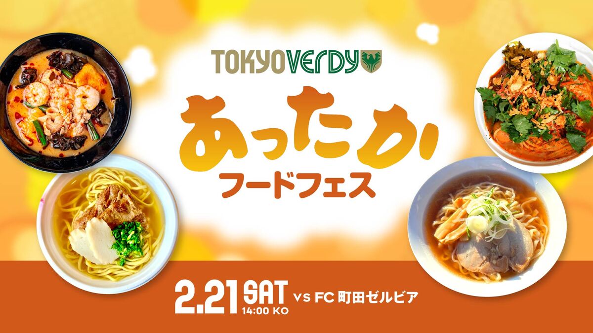FC町田ゼルビア戦では、スタジアムグルメ特別イベントとして、フードヴィレッジ、ファミリアランド、SWEETS ROADの各店舗にて『東京ヴェルディ あったかフードフェス』を開催します。