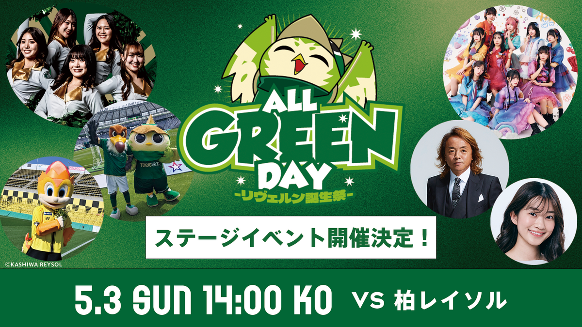 5月3日(日・祝)柏レイソル戦では、『ALL GREEN DAY』特別ステージをアジパンダ広場で実施します!