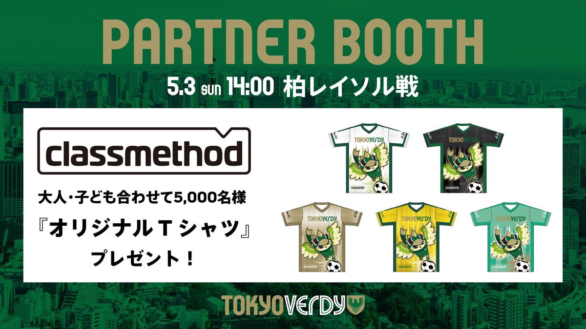 4月29日(水・祝)鹿島アントラーズ戦にてプレゼントする『オリジナルキッズTシャツ(グリーン)』を着用の上、クラスメソッドブースへお越しいただいた方先着2,500名様におひとり1枚プレゼント!