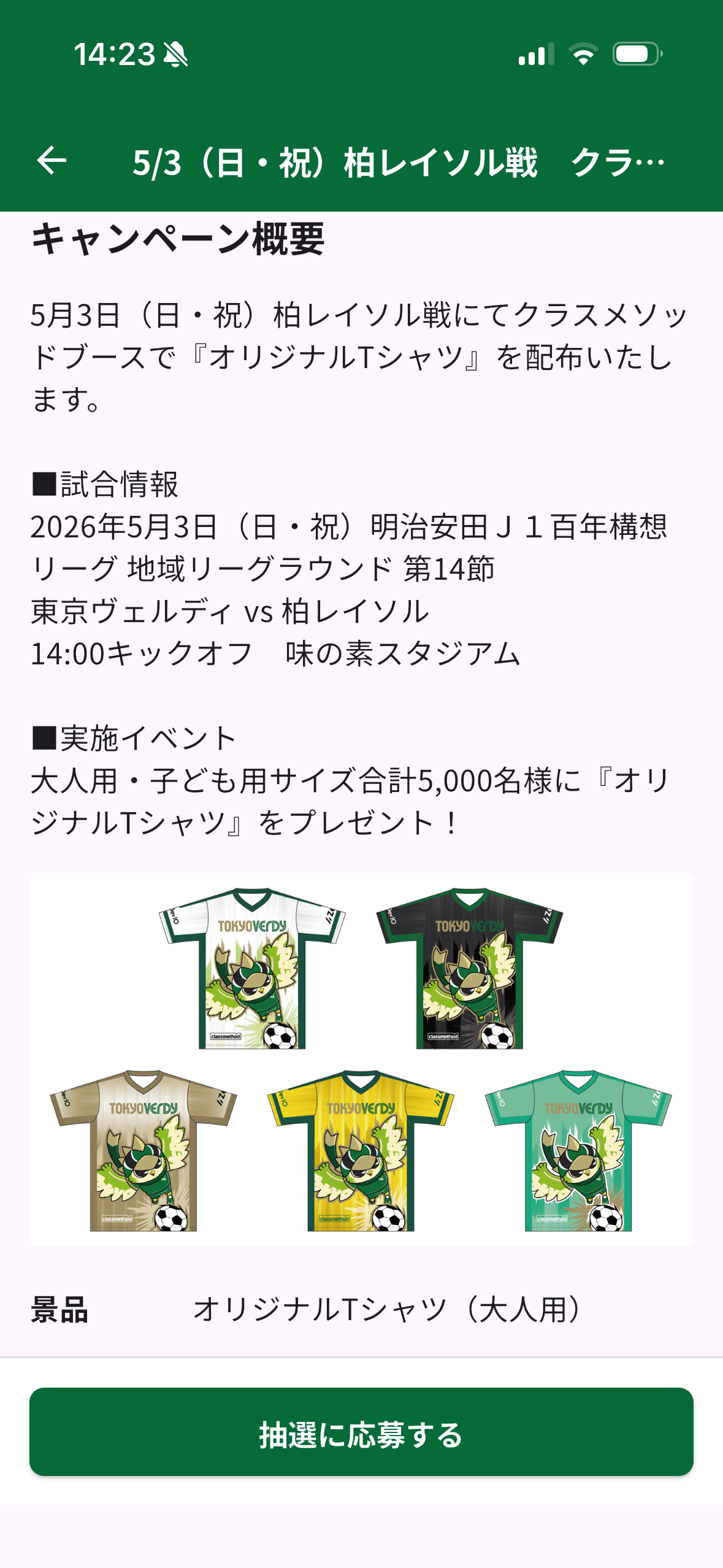 抽選に参加するためには、『東京ヴェルディアプリ』のダウンロードとアプリ上の『東京ヴェルディID』の登録が必要となりますので、事前のご対応をお願いします。